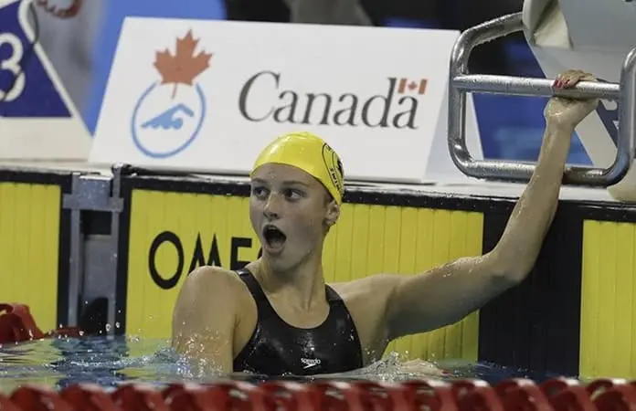 La nativa de Toronto también estableció nuevas marcas canadienses en otros dos eventos: los 200 mariposa, donde estuvo a menos de medio segundo de un récord que se mantiene desde 2009, y los 800 estilo libre, donde también estuvo cerca del récord mundial de Katie Ledecky establecido el mes pasado.