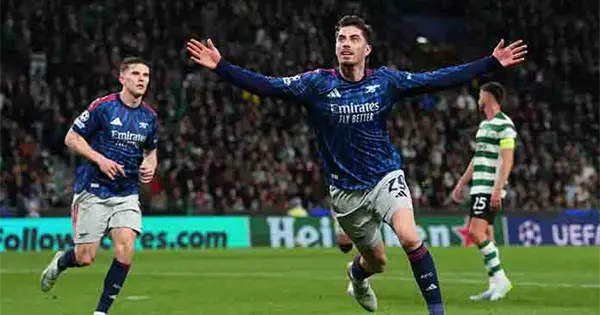 Kai Havertz anotó en el tiempo de descuento para que los Gunners derrotasen el martes de visita 1-0 al Sporting de Lisboa en el estadio José Alvalade. El equipo de Mikel Arteta tomó así el control del cruce de cuartos de final.