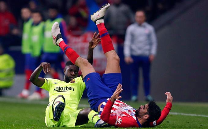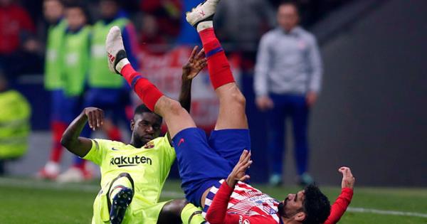 Samuel Umtiti se resintió de una lesión durante el partido contra el Atlético de Madrid / Foto: AP