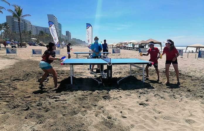 Es importante señalar que este Festival se está jugando a tres de cinco sets, pero los sets no son por puntos, sino por minutos y se juegan 3 minutos, además de que se juega con una pelota de 44 milímetros que es más grande y pesada, y con raquetas sin hule, además de que las mesas están colocadas en plena playa sobre la arena, lo que lo hace un evento único.
