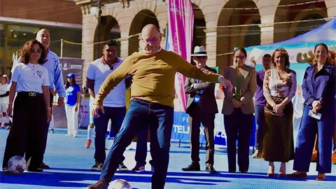 El alcalde de San Luis Potosí, Enrique Galindo Ceballos, encabezó en la Plaza de los Fundadores la inauguración de la edición 15 del torneo nacional de futbol street "De la Calle a la Cancha", organizado por la Fundación Telmex–Telcel en coordinación con el Ayuntamiento.