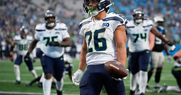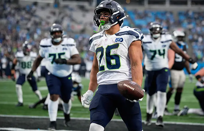 CHARLOTTE.- Zach Charbonnet corrió para 110 yardas y dos touchdowns, y los Seahawks de Seattle convirtieron dos pérdidas de balón de Carolina en el tercer cuarto en touchdowns para vencer el domingo 27-10 el domingo y acercarse al puesto número uno en los playoffs de la NFC.