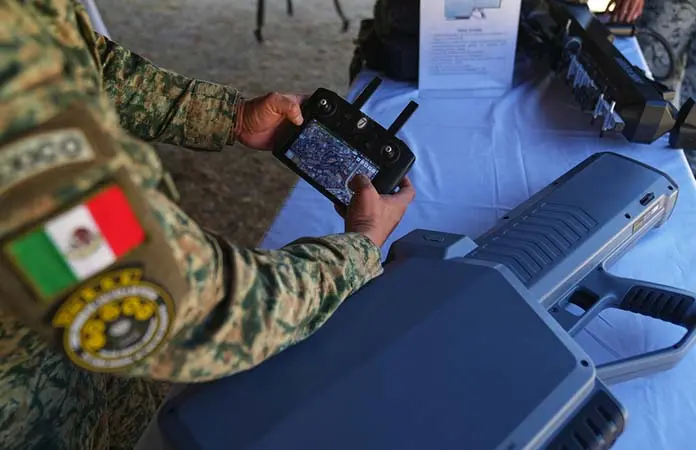 En los espacios del Batallón de Respuesta a Emergencia de la Secretaría de la Defensa Nacional, en el Campo Militar número 1 de la zona metropolitana de la capital, un grupo de uniformados realizó el viernes una exhibición de los equipos portátiles y semifijos de inhibición de drones que se emplearán en los diferentes festivales y en los estadios Banorte (antes conocido como Estadio Azteca) de Ciudad de México, Akron de Guadalajara y BBVA de Monterrey.