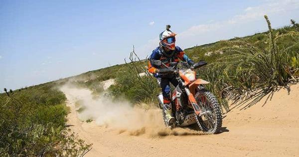 El oriundo de Ensenada recorrió la primera de dos etapas de la competencia, compuesta por 550 kilómetros totales, en 8:21:21 horas; mientras que el segundo tramo de 350 lo hizo en 4:57:24 horas, para con ello quedarse con el primer lugar de la categoría Pro Moto Unlimited.