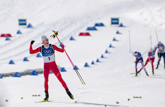 "Ahora estoy aliviado y feliz. Las Olimpíadas siempre dan más emociones", afirmó Klaebo, quien conquistó su primer título de esquí de fondo al ganar la prueba disputada en Lago di Tesero y dedicó su triunfo a su abuelo Kare, que también es su entrenador. Klaebo también ganó la competencia de velocidad individual, la de velocidad por equipo en Pyeongchang 2018 y Pekín 2022, mientras que también se quedó con el título en la posta 4x10 kilómetros de la cita surcoreana. Asimismo, el noruego completó el podio en la competencia de 15 kilómetros de Pekín 2022, en la que sumó además una medalla de plata en la posta 4x10 kilómetros.