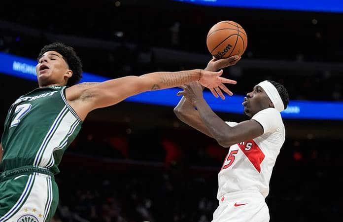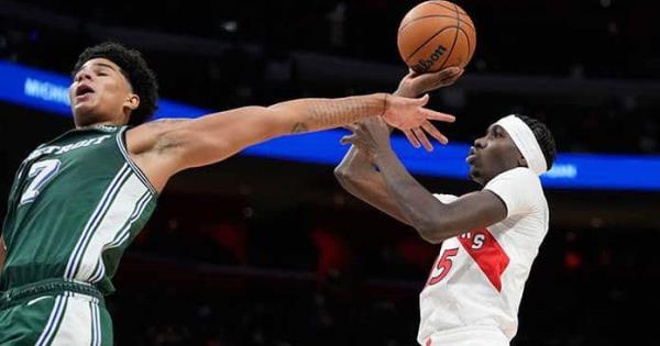 Detroit llegó a estar 14 puntos abajo antes de que Hamadou Diallo encestara dos tiros libres a 7:37 minutos del final para acercarse 94-93. Banton anotó un triple y Toronto se fue arriba por seis unidades cuando faltaban 4:54 minutos. Isaiah Livers tuvo otro tiro de tres para acercarse a Detroit 103-100.