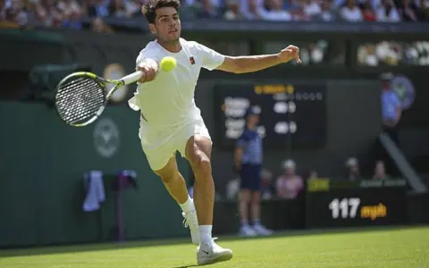 “No importa la racha de victorias que tengo ahora, que he estado jugando muy bien en césped, que me he estado preparando realmente bien”, dijo Alcaraz, quien venció a Novak Djokovic en las finales de 2023 y 2024. “Wimbledon es diferente. Hoy pude sentir que estaba realmente nervioso al principio”.