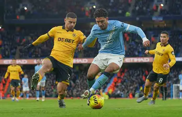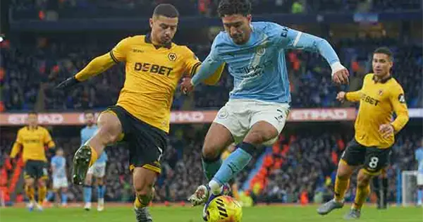 Guardiola pasó más tiempo enfurecido por los estándares de arbitraje después de que Farai Hallam, un árbitro que dirigía su primer partido de la Premier League, se negó a dar un penalti al City cuando el marcador estaba 1-0 después de que Marmoush desvió el balón contra el brazo del defensor de los Wolves, Yerson Mosquera. Hallam se mantuvo en su veredicto original después de que el VAR le pidiera que revisara su decisión en el monitor al lado del campo.