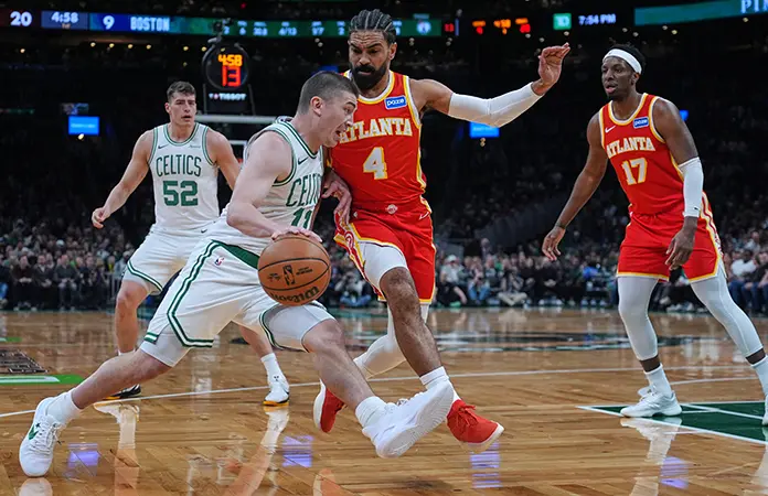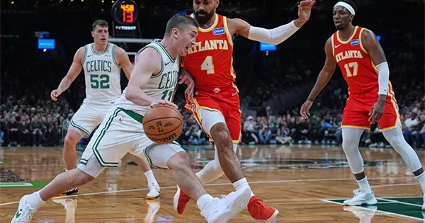 Tras una victoria en tiempo extra sobre Detroit, líder de la Conferencia Este, Atlanta llegó al último cuarto con opciones reales ante Boston, que tiene el segundo mejor récord del Este. Tatum tuvo una noche difícil en tiros de campo, al fallar 16 de 24, pero su penetración con giro hacia el aro le dio a Boston una ventaja de 97-86 con 7:29 por jugar.