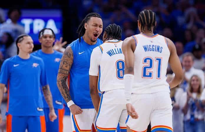 Jalen Williams tuvo problemas de puntería durante tres cuartos, pero anotó 10 de sus 18 puntos en el último periodo para que Oklahoma City conservara su condición invicta en los playoffs.