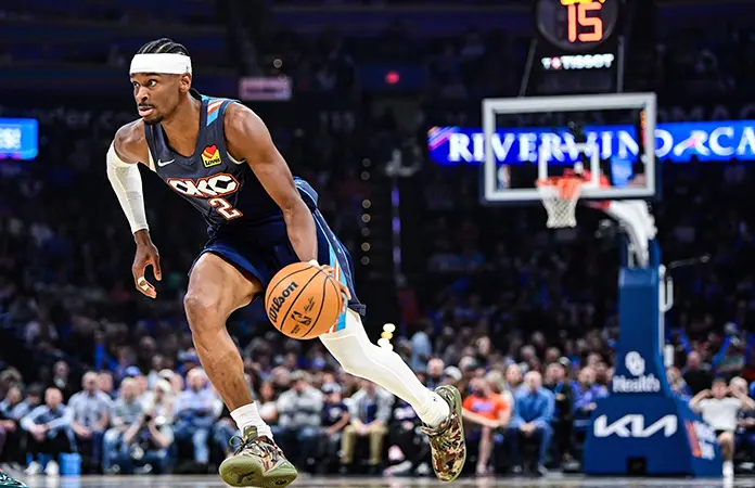 Gilgeous-Alexander, habitualmente eficiente, encestó apenas 8 de 24 tiros. Sus compañeros asumieron la carga y ayudaron a que el Thunder atinara el 46,5% de sus tiros de campo. Aun así, Gilgeous-Alexander anotó al menos 20 puntos por 134º partido consecutivo, un récord.