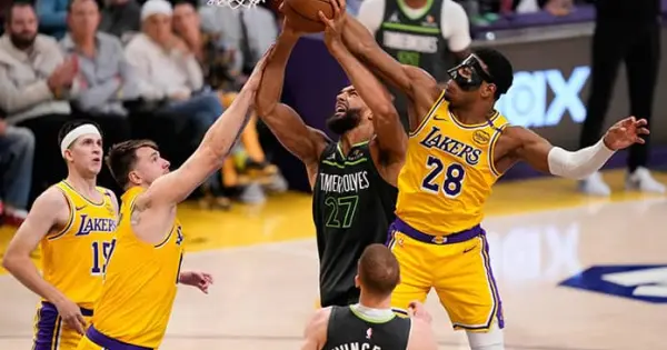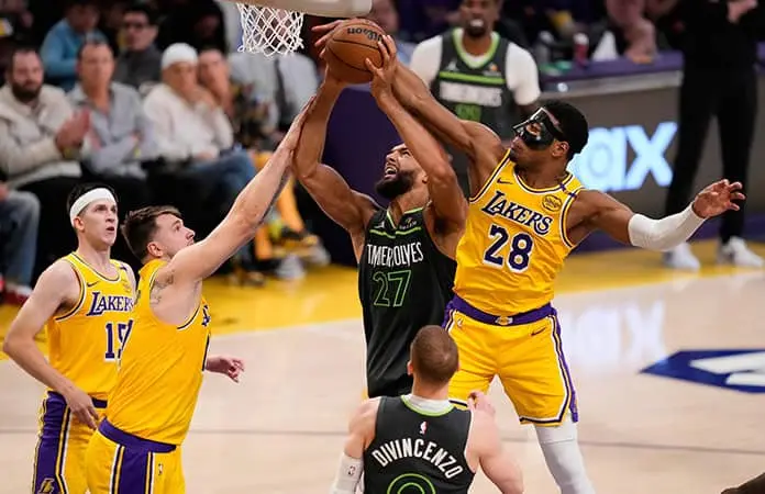 Con un Gobert dominante en la pintura mientras los Lakers jugaban deliberadamente sin un pívot, Minnesota ganó el quinto partido a pesar de acertar siete de 47 intentos de tres puntos, incluyendo 17 fallas consecutivas entre la mitad del segundo cuarto y el triple decisivo de Mike Conley con 1:22 por jugar.
