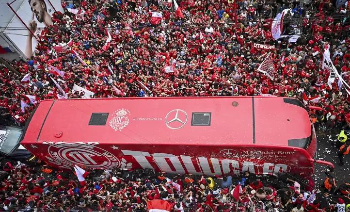 Minutos después llegó el América y abriéndose paso entre una impresionante marea escarlata, también tardó más de lo normal para entrar al estadio Nemesio Díez. Minutos en los que recibieron todo tipo de insultos; algunos hasta arrojaron pequeños proyectiles al autobús.