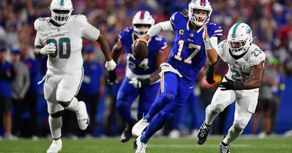 ORCHARD PARK.- Josh Allen lanzó tres pases de touchdown y Terrel Bernard interceptó a Tua Tagovailoa con tres minutos restantes para asegurar el jueves por la noche la victoria de los Bills de Buffalo por 31-21 sobre los Dolphins de Miami.