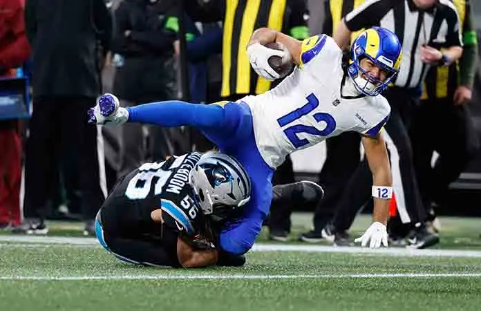 CHARLOTTE.- Matthew Stafford lanzó un pase de touchdown de 19 yardas a Colby Parkinson con 38 segundos restantes para llevar a los Rams de Los Ángeles a una dramática victoria de 34-31 el sábado sobre los Panthers de Carolina en la ronda de comodines en el juego inaugural de los playoffs de la NFL.