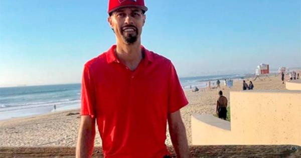 El otrora jugador de White Sox y Yankees aparece en la playa, con una playera roja que visiblemente le queda grande, al igual que un pantalón de mezclilla.