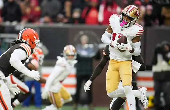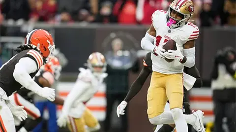 Cleveland tomó una ventaja de 8-7 al final del segundo cuarto cuando Sanders se conectó con Harold Fannin para un touchdown de 34 yardas y la carrera de Quinshon Judkins añadió la conversión de dos puntos. Pero San Francisco (9-4) anotó los siguientes 19 puntos en su tercera victoria consecutiva.