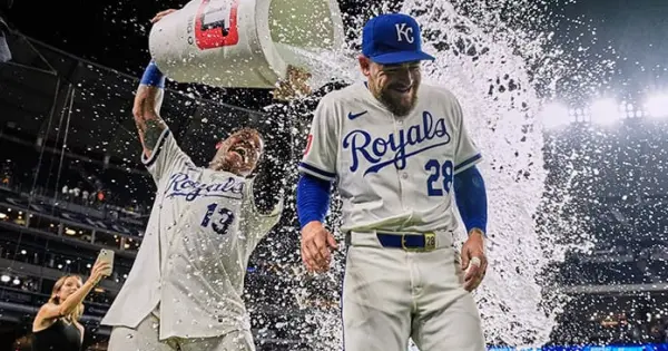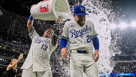 Pérez conectó un jonrón contra el novato Cade Cavalli después de que el venezolno Maikel García recibiera un boleto al inicio de la entrada y que empató el juego a cuatro. Adam Frazier conectó un sencillo, lo que provocó la salida de Cavalli, y Jackson Rutledge (1-2) entró y retiró a Randal Grichuk con un rodado para una doble matanza. Nick Loftin conectó un sencillo con dos outs antes de anotar con el cuarto jonrón de Isbel. Pérez llegó a 21 cuadrangulares.