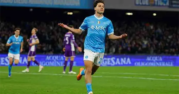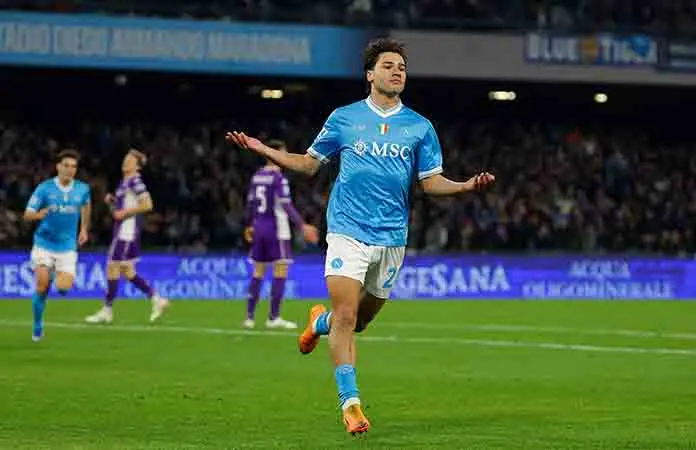Vergara anotó su primer gol para el Napoli en esa derrota y añadió a eso su primer gol en la Serie A el sábado, en el minuto 11. Rasmus Højlund fue bloqueado por los defensores de la Fiorentina al intentar recoger un balón largo, pero eso permitió a Vergara hacerse con él y avanzar rápidamente antes de disparar al ángulo inferior derecho.