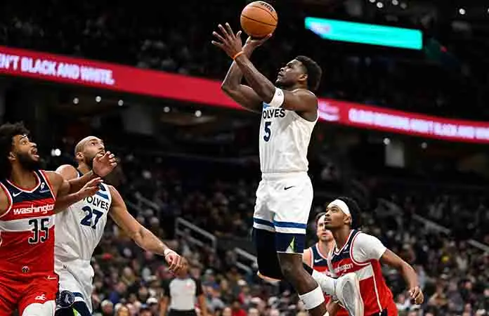 Los Wizards nunca se acercaron a menos de 13 después del medio tiempo. Edwards anotó 18 en el tercer cuarto mientras los Timberwolves se alejaban para una ventaja de 108-79. Su mayor ventaja fue de 37.