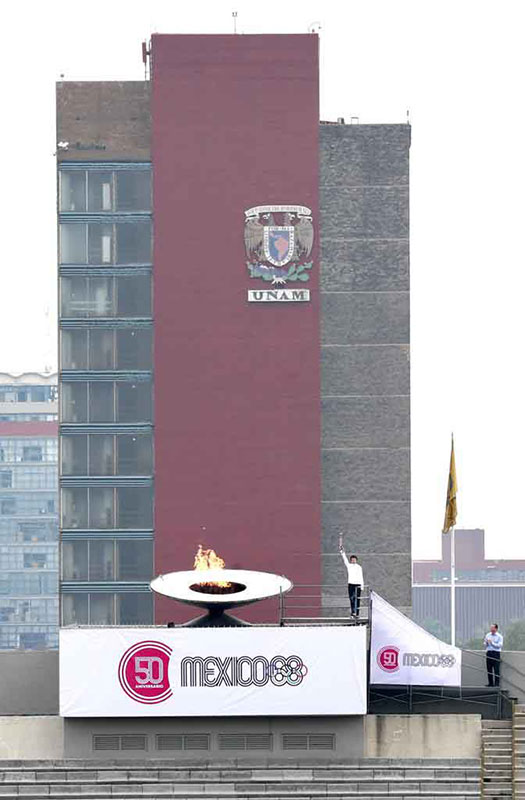 Sin contratiempos, la antorcha del fuego conmemorativo cumplió con el recorrido desde el Centro Deportivo Olímpico Mexicano hasta llegar al estadio Olímpico Universitario cargada por 104 relevistas.