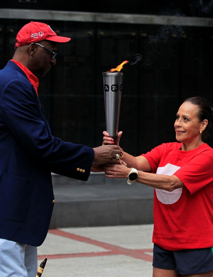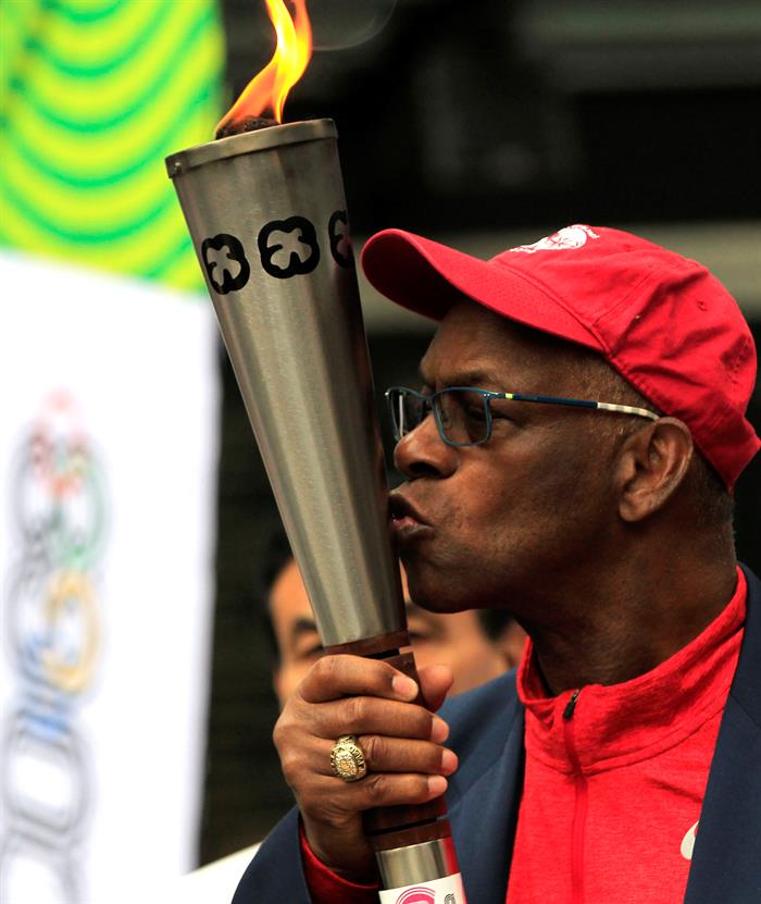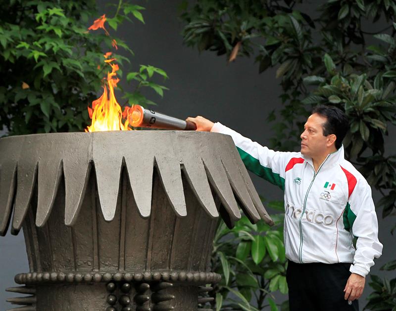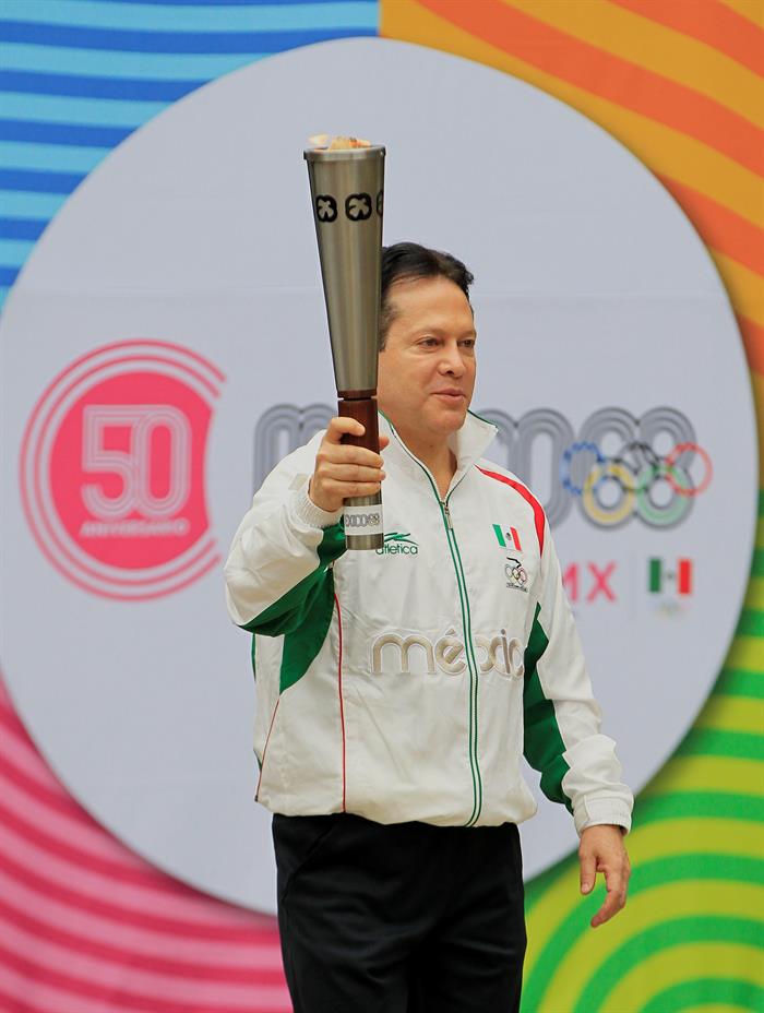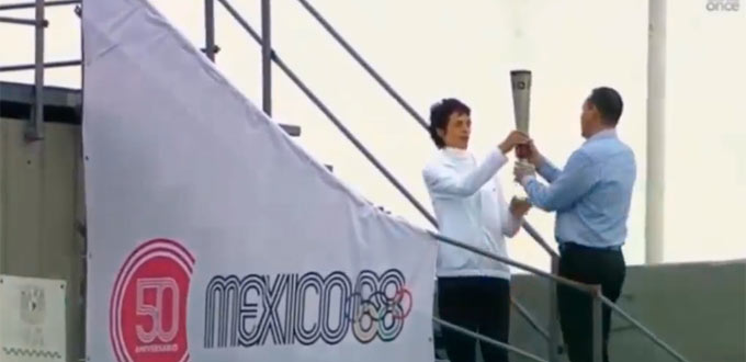 Una vez arriba otorgó a Horacio de la Vega, director del Instituto del Deporte de la Ciudad de México y finalmente la llama llegó a manos de “Queta” Basilio para redondear esta histórica ceremonia.