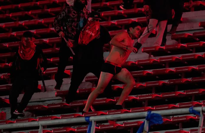 Los incidentes comenzaron sobre el final de la primera mitad, con el partido igualado a uno y un global de 2-1 en favor de los chilenos, cuando fanáticos del equipo visitante situados en una de las tribunas más altas del estadio comenzaron a lanzar butacas y trozos de la grada extraídos de la estructura hacia la parte baja, donde estaban hinchas del ‘Rojo’.