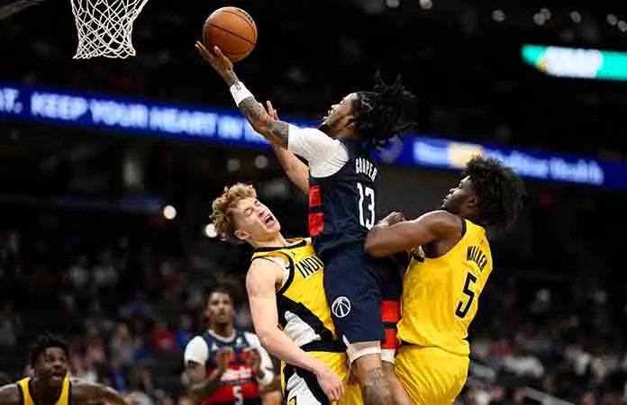 Sharife Cooper igualó el mejor número en su trayectoria con 18 puntos por Washington, que quedó dos partidos por encima de Indiana en el fondo de la clasificación de la Conferencia Este y medio juego por delante de Brooklyn, que jugaba más tarde en Oklahoma City.
