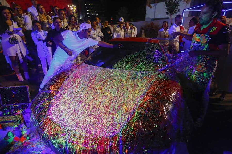 Un jaguar simulando la técnica de chaquira de la comunidad indígena wixárika, un diseño multicolor de caballo, un hombre con cabeza de pájaro, y diseños estilo grafiti, fueron algunas de las intervenciones realizadas en los Ferrari a manos de los artistas que aprovecharon la noche del viernes y madrugada del sábado para plasmar sus ideas.