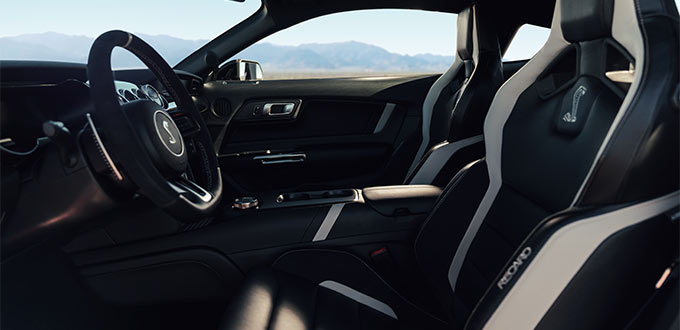 Para aprovechar la potencia y el par del Mustang más potente jamás fabricado para la calle requiere una tecnología de chasis activo de vanguardia, neumáticos Michelin de oruga y frenos Brembo ® , todos marcados por Ford Performance.