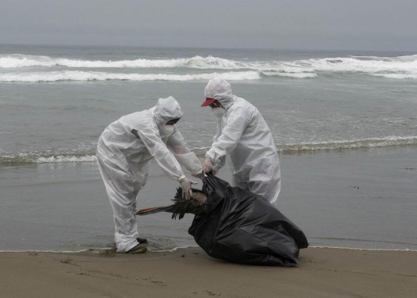 Una periodista de The Associated Press presenció el martes cómo trabajadores de limpieza del municipio de Santa María, un balneario de la costa del Pacífico en la zona sur de Lima, recogieron decenas de cuerpos de pelícanos que quedaron desperdigados en la arena.