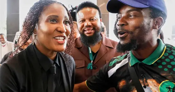 Actualmente está siendo juzgada por cargos no relacionados con los disturbios mortales en Sudáfrica en 2021. Se le acusa de incitarlos con publicaciones en redes sociales.