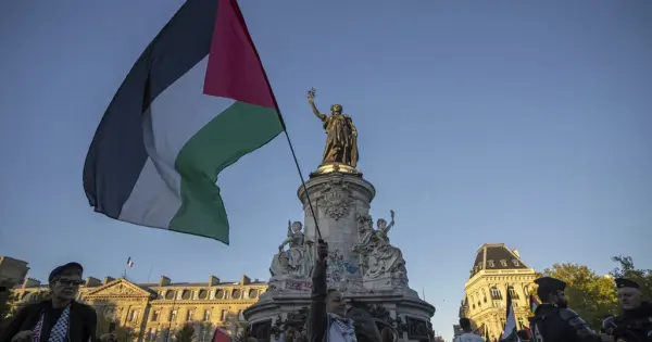 Sin embargo, el llamado ha ido ganando impulso a medida que las banderas palestinas se han vuelto cada vez más visibles en Francia durante la guerra de casi dos años en Gaza. Las enseñas palestinas se exhibieron en manifestaciones esta semana durante un gran día de protestas en todo el país contra varias políticas del presidente francés Emmanuel Macron y su gobierno.
