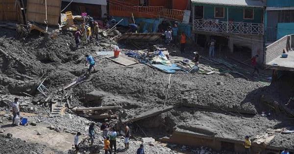 El alud se llevó por delante viviendas y todo lo que encontraba a su paso. Los habitantes solo podían gritar y lamentarse mientras veían deslizarse con fuerza el denso torrente de agua marrón y barro.