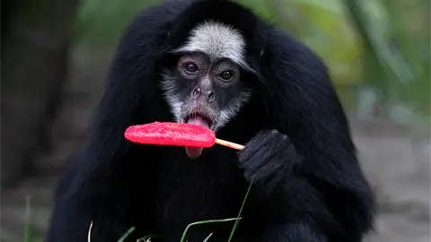 RÍO DE JANEIRO (AP) — Los animales del zoológico BioParque de Río de Janeiro disfrutaron helados y golosinas congeladas el martes, mientras la ciudad enfrentaba un día más de calor extremo en el verano brasileño.