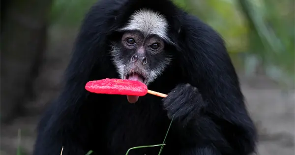Jaguares, monos y otros animales recibieron una dieta helada preparada según las necesidades de cada especie, dijeron las autoridades del zoológico. A algunos se les ofrecieron frutas congeladas, mientras que otros obtuvieron mezclas que contenían sangre congelada.