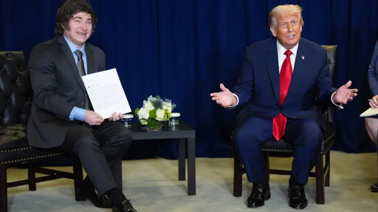 "Vamos a ayudarles, no creo que necesiten un rescate" financiero, dijo Trump a los periodistas unas horas antes del encuentro y añadió que "Scott (Bessent) está trabajando con el gobierno argentino para que puedan obtener una deuda favorable y todo lo necesario para que Argentina vuelva a ser grande".