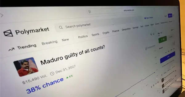 Este último está atrayendo un renovado escrutinio hacia este mundo turbio de transacciones especulativas 24/7. La semana pasada, un apostador anónimo se embolsó más de 400,000 dólares tras predecir que Maduro pronto dejaría el cargo.
