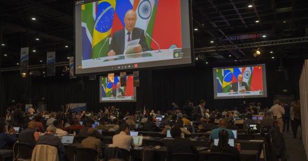El presidente de Rusia, Vladímir Putin, no viajó debido a la orden de detención en su contra dictada por la Corte Penal Internacional en marzo por el secuestro de niños en Ucrania. Aunque ha participado de forma virtual, Moscú estuvo representada en el anuncio por el ministro ruso de Exteriores, Sergey Lavrov.