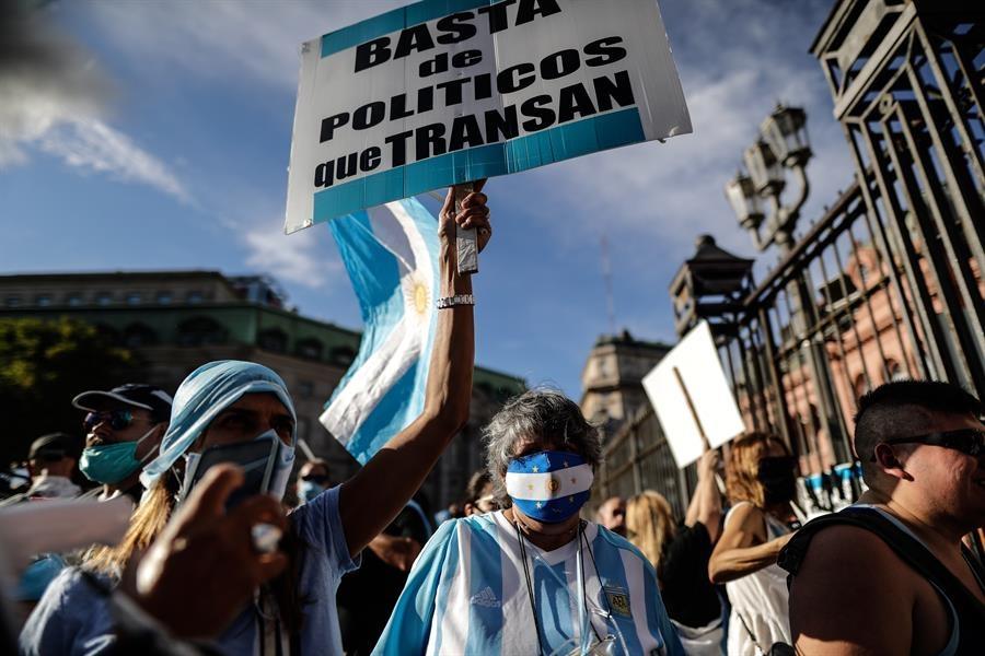 Las calles de Buenos Aires se convirtieron este sábado en epicentro de las protestas contra el Gobierno en medio de una fuerte polémica tras conocerse que varias figuras cercanas al poder se habían vacunado contra la covid-19 de forma privilegiada.