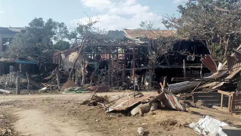 Medios de comunicación independientes en línea, incluido el servicio de noticias Myanmar Now, publicaron imágenes y videos que supuestamente muestran los escombros del ataque aéreo.