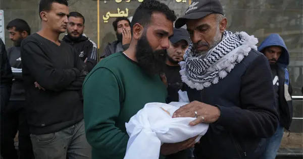 Soldados israelíes dispararon en dirección de un edificio en el barrio de Tuffah, en el norte de Gaza, y mataron al menos a 11 personas, la mayoría de la misma familia, según el Hospital Shifa, que recibió los cadáveres. Entre las víctimas estaban dos padres, su hija de 10 días, Wateen Khabbaz; su primo de 5 meses, Mira Khabbaz, y la abuela de los niños.