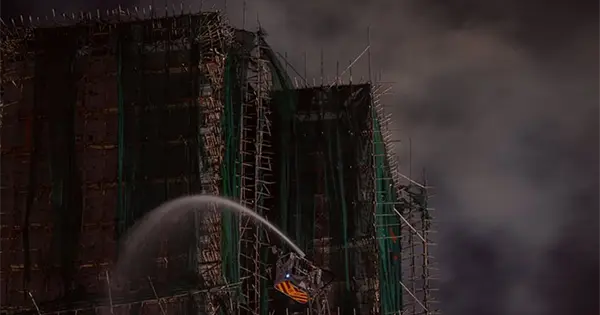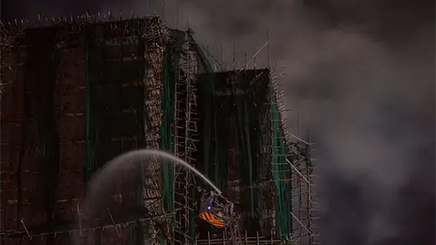 Los bomberos han tenido problemas para controlar las llamas desde que estalló el incendio a media tarde del miércoles, cuando se cree que el fuego comenzó en el andamio de bambú y la red de construcción y luego se expandió por siete de los ocho edificios del complejo.