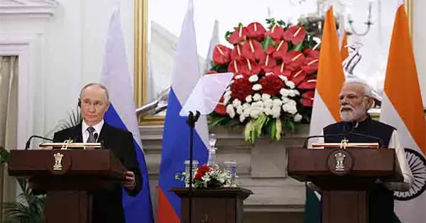 Nueva Delhi.- El presidente de Rusia, Vladímir Putin, mantuvo conversaciones con el primer ministro de India, Narendra Modi, el viernes en una cumbre anual y acordaron diversificar los lazos económicos mutuos, en un momento en que Estados Unidos presiona a Nueva Delhi para que revise su asociación de décadas con Moscú.