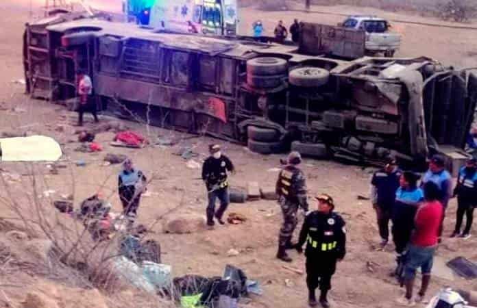 Lima, Perú.- Al menos 20 personas murieron y otro número aún no precisado resultó herido este sábado después de que el autobús en el que viajaban cayera por un precipicio en la región de Piura, en el norte de Perú, informaron fuentes oficiales y medios locales.