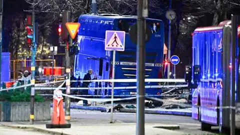 La agencia de noticias sueca TT informó que la policía confirmó que el conductor ha sido detenido y será interrogado para determinar lo sucedido. La parte delantera del autobús parecía haber sufrido daños graves.