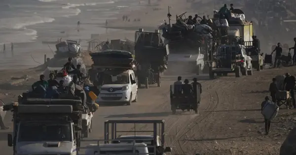 Los palestinos salían de la ciudad, algunos en coche y otros a pie. Israel abrió otro corredor al sur de Ciudad de Gaza durante dos días a partir del miércoles para permitir la evacuación de más gente.