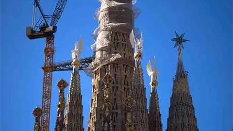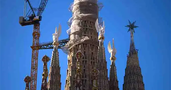 Con la adición del viernes, la Sagrada Familia se acerca un poco más a su finalización. El monumento inconcluso se convirtió el año pasado en la iglesia más alta del mundo tras el izamiento y colocación de otra parte de su torre central.
