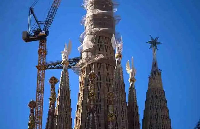 La primera piedra de la Sagrada Familia se colocó en 1882, pero Gaudí nunca esperó que se terminara en su período de vida. Solo una de sus torres estaba finalizada cuando el arquitecto murió, a los 73 años, en 1926, tras ser atropellado por un tranvía. El interior de la Torre de Jesucristo todavía está en obras. Su exterior está flanqueado por grúas de construcción y andamios.