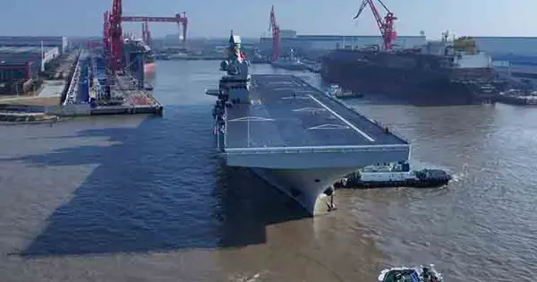 El Sichuan Tipo 076, que zarpó del astillero Hudong-Zhonghua en Shanghái, combina características de portaaviones con las de un buque de asalto anfibio y tiene la capacidad de lanzar tanto aeronaves como lanzas de desembarco cargadas con tropas.